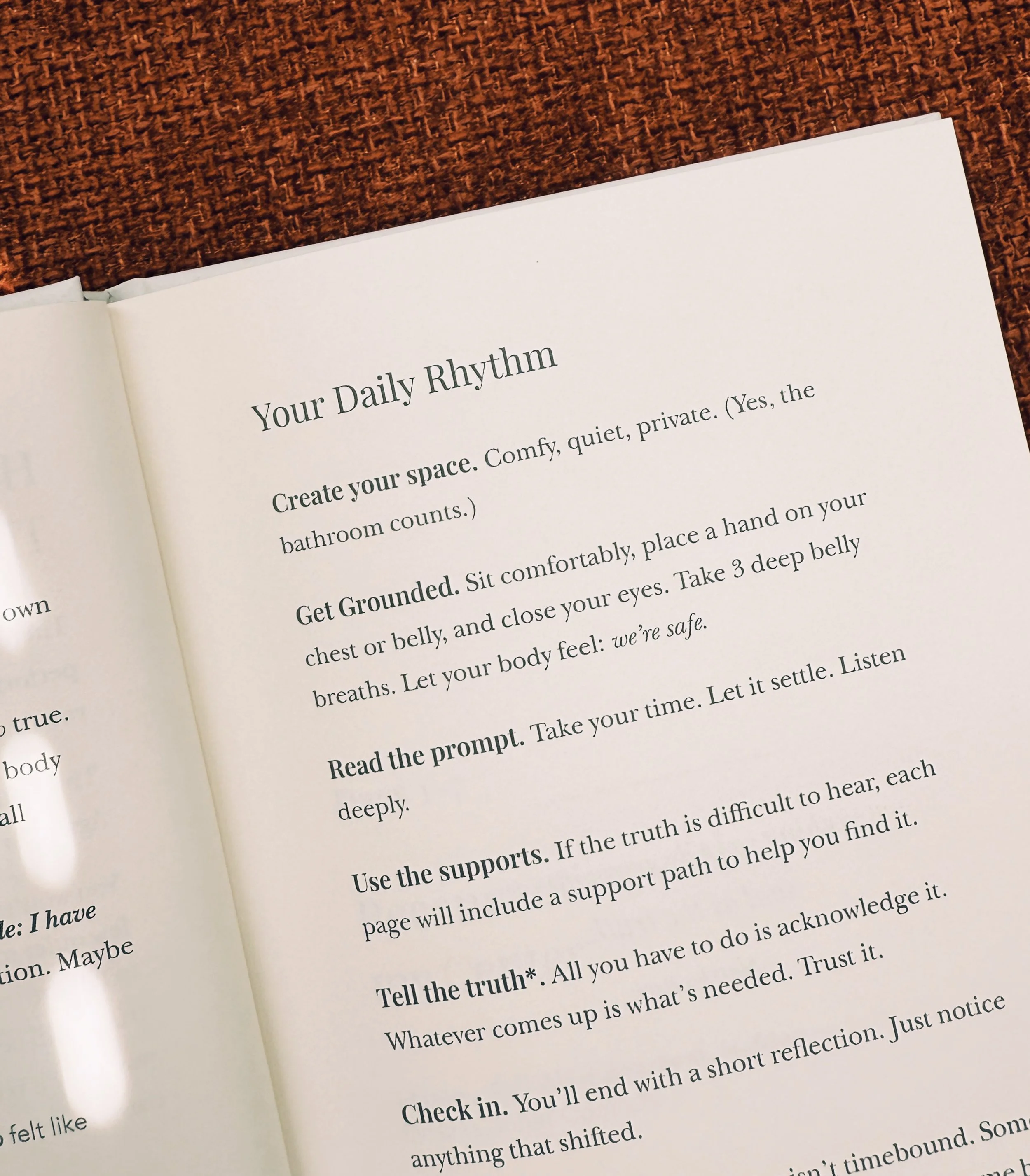 A check-in at the bottom of each page helps you notice shifts and stay present with what’s real.